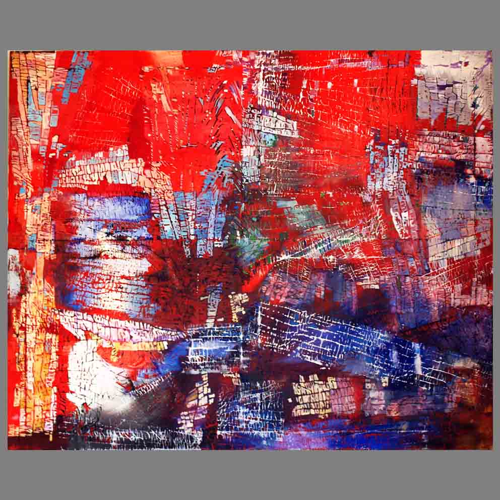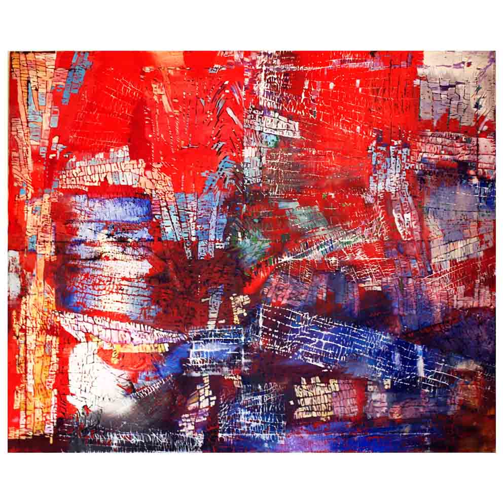 "Vista in rosso a volo d'uccello"| cm. 140x170| anno 1975