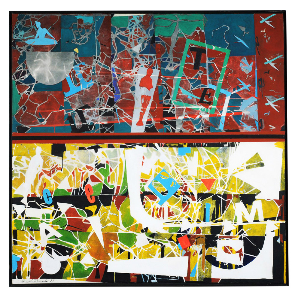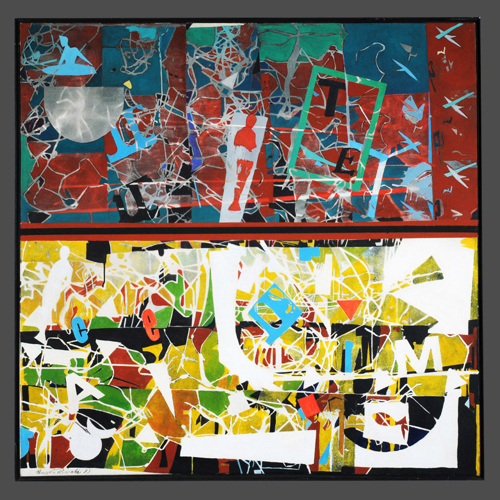 - Angelo Rinaldi, scena di vita, tecnica mista su tela, cm.104x104, anno 1993