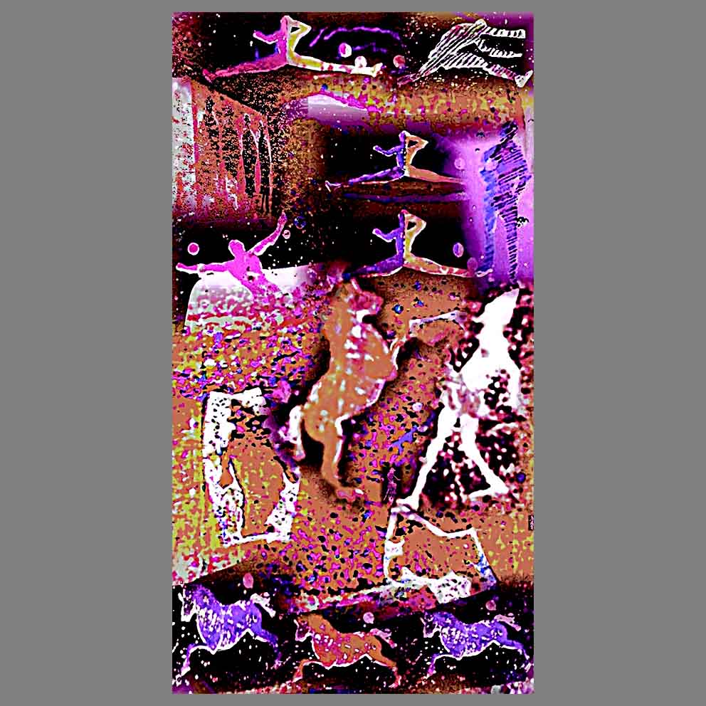 " Il circo" della serie Pinocchio| tecnica mista su tela| h.cm. 200x100| anno 2003